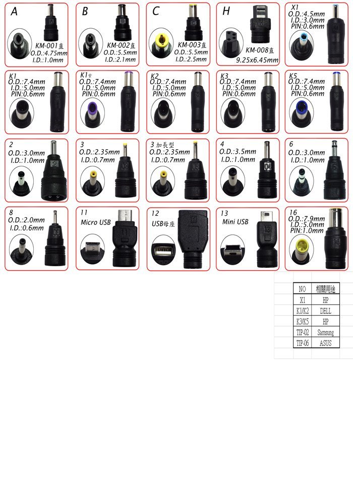 例如: 變壓器OUTPUT輸出為19V 3.42A,瓦數為19 × 3.42 = 64.98,為65W