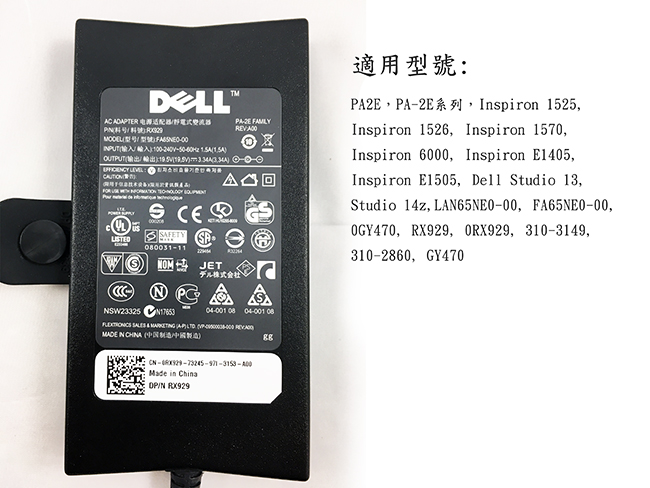 適用型號 : DELL PA-2E系列等相符於DELL筆電標示19.5V 3.34A接頭孔徑7.4-5.0mm