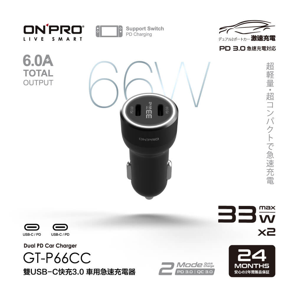 ONPRO GT-P66CC PD 66W 雙 USB-C 超急速 車用 快速 充電器 快充