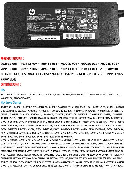 677770-001, 677770-002, 613149-001, 693149-001, 709985-002, 709985-004, 710412-001, 714657-001, PA-1650-32HK, PPP009C, PPP009L-E, 363955-001, 463553-004, 700414-001, 384021-001, 709986-001, 709986-002, 709986-003, 709987-001, 709987-002, 709987-003, 710413-001, 710414-001, ADP-90WH D, HSTNN-CA13, HSTNN-DA13, HSTNN-LA13, PA-1900-34HE, PA-1900-18H2, PPP012C-S, PPP012D-S, PPP012L-E