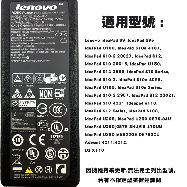 設備 INPUT輸入為19V 2.37A (45W) ,則此款變壓器可以使用